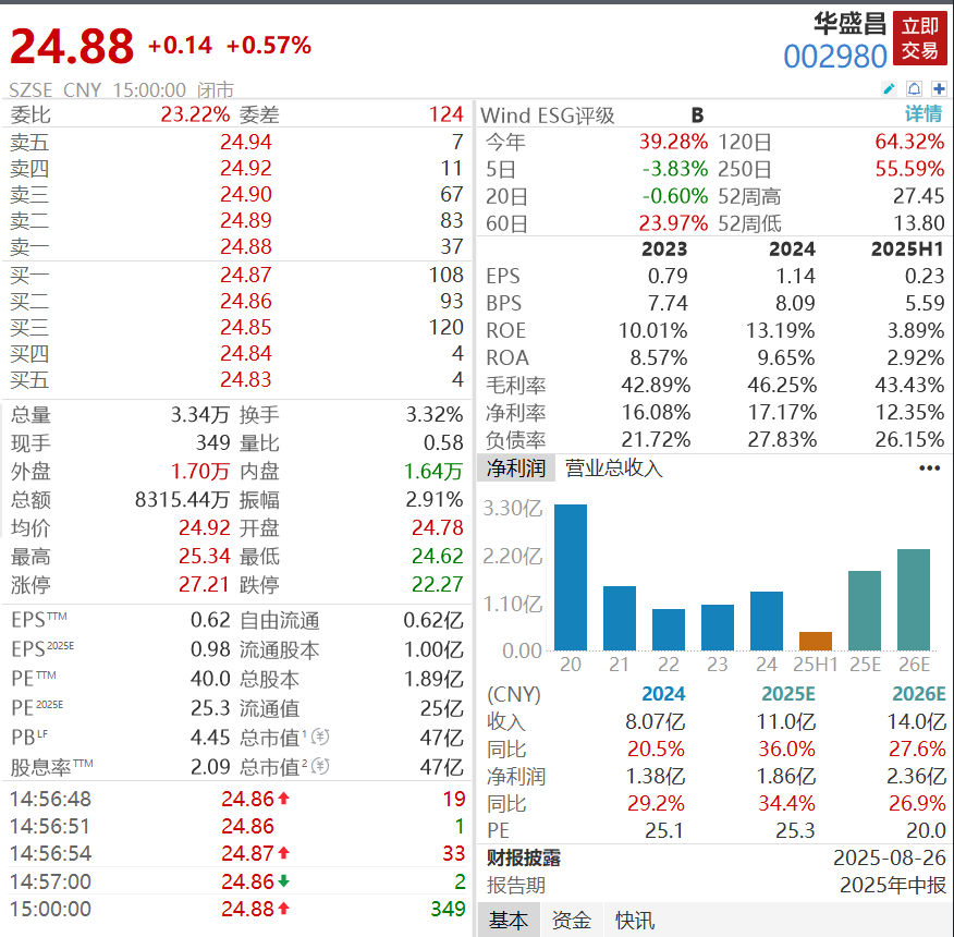 欺压9月30日收盘,华盛昌飞腾0.57%,报24.88元/股,年内飞腾39.28%。